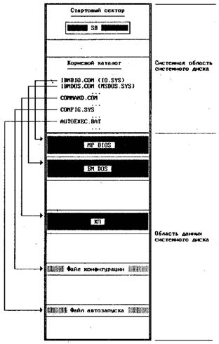 Компоненты DOS хранятся на системном диске (за исключением SB) в файлах с зарезервированными составными именами.