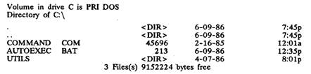 Комментарии. По команде DIR на экран дисплея