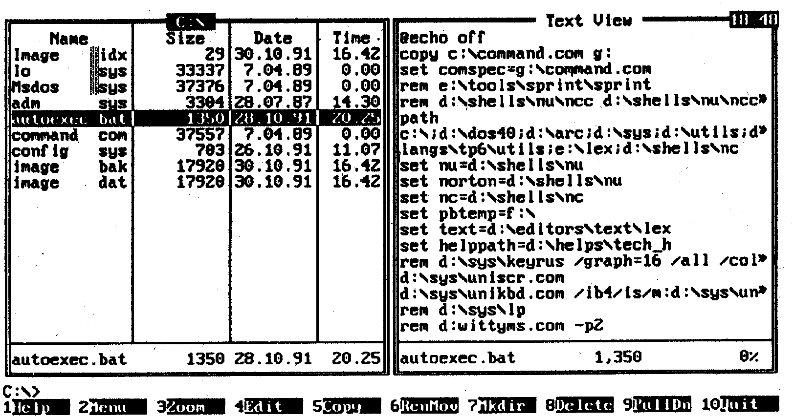 Среди других оболочек DOS Norton Commander в первую очередь выделяется великолепными высокоскоростными средствами визуализации файлов (поддерживаются 17 или 22 наиболее распространенных форматов, в том числе даже графический стандарт РСХ) и в развитыми средствами электронной почты.