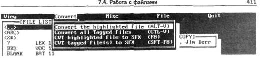 CVT tagged file(s) to SFX (оперативный вариант — Shift-F8) служит для преобразования выделенных