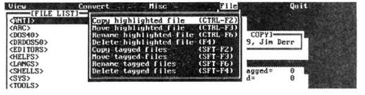 Copy tagged flies (оперативный вариант — Shift-F2), Move tagged files (Shift-F3), Rename.tagged files (Shift-F6) и Delete tagged files (Shift-F4) служат соответственно для копирования,