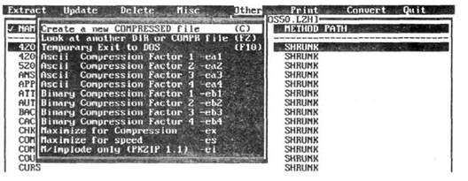оболочки по степени сжатия информации, a Maximize for Speed — по скорости работы (быстродействию). Команда M/Implode only (PKZIP 1.1) задает явно метод сжатия Imploding для утилиты