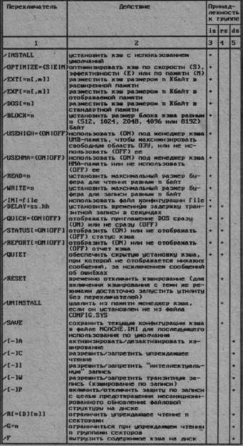 работы и размер устанавливаемого кэша, группы rs изменяют режимы