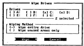 обработки файлов нужно выбрать подкоманду Wipe и в этом окне.